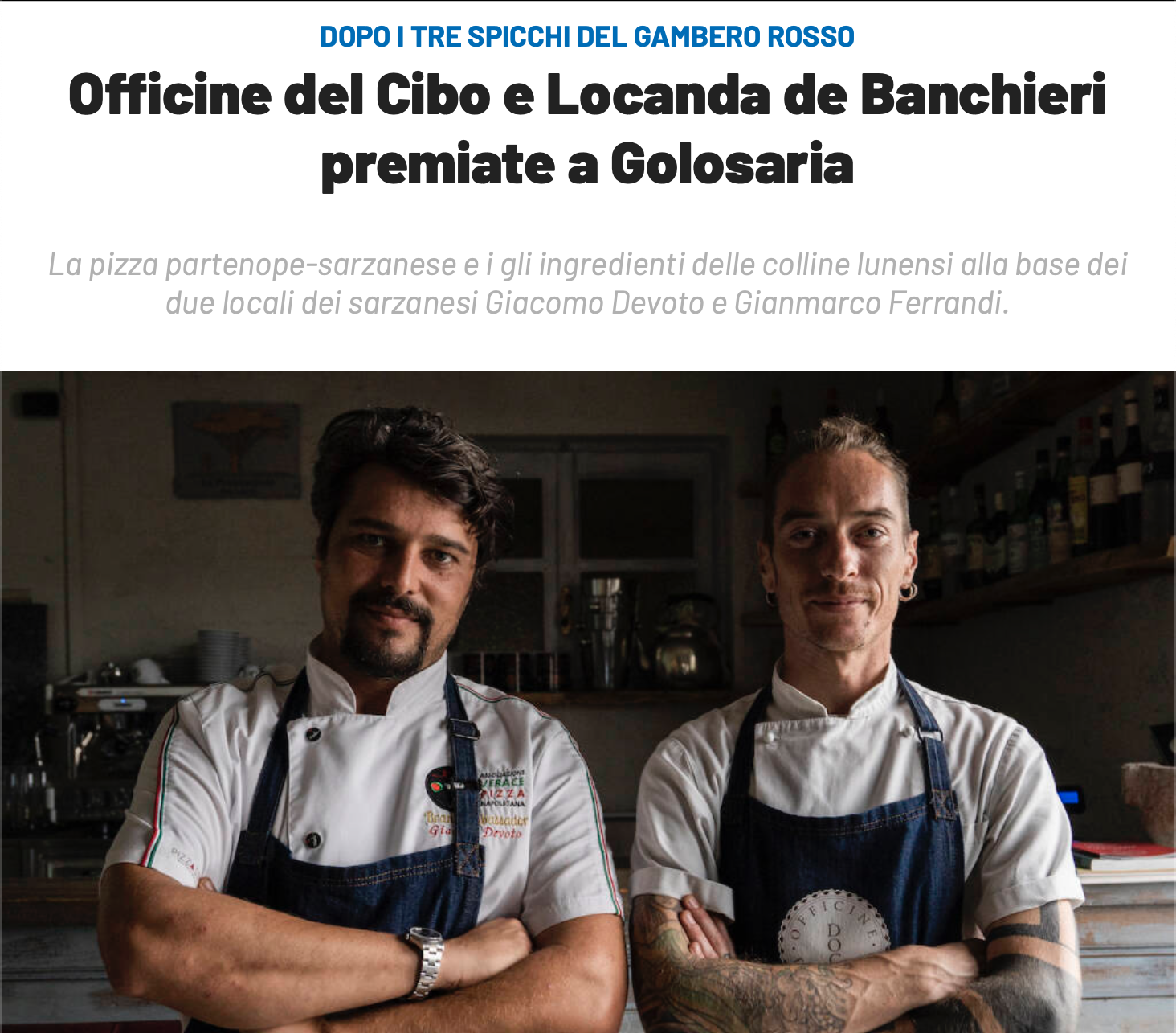 Officine del Cibo inserita nella Guida dei Ristoranti d'Italia del Gambero Rosso. Nella scheda si legge: "Quella del duo Devoto-Fe...